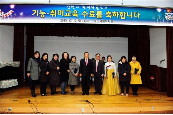 |  | | | ⓒ 김천내일신문 | | 김천시(시장 박보생)는 12월 17일 종합사회복지관 여성회관 3층 강당에서 지난 1년간 3개 기수 교육과정을 마치는 수료식을 가졌다.