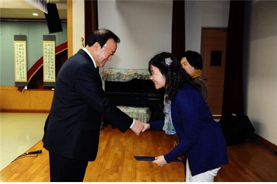 복지관 평생학습동아리로 활동하고 있는 ‘소리하나 오카리나 동호회’의 식전공연에 이어 수료증과 개근상 수여, 박보생 김천시장의 축하인사말, 수료소감, 작품발표회 순으로 진행되었다.