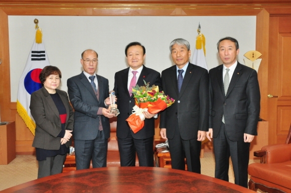 |  | | | ⓒ 김천내일신문 | | 12월 28일 김천시(시장 박보생)는 ‘2015년도 조달업무 우수기관’으로 선정되었다고 밝혔다. 이에 이석규 대구지방조달청장이 김천시를 직접 방문하여 조달청 우수기관(조달청장상) 트로피를 박보생 김천시장에게 전달했다.