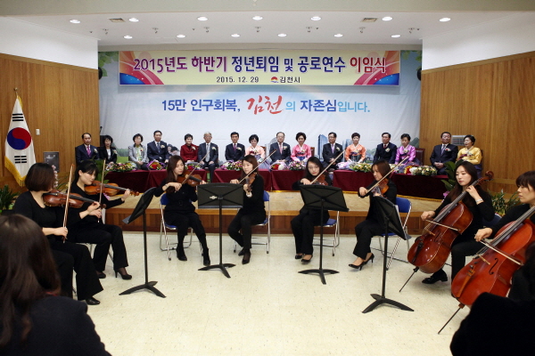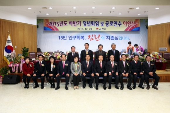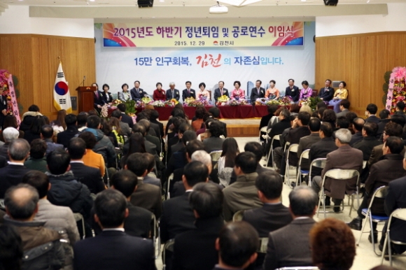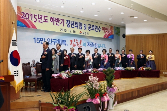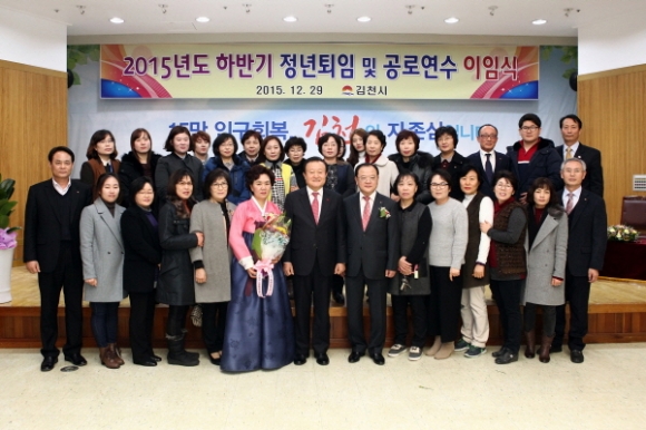 김천시청(시장 박보생) 3층 대강당에서 12월29일 2015년도 우문경 보건소장을 비롯해 9명에 대한 퇴임 및 이임식을 가졌다.