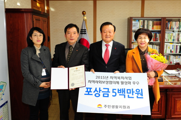 이번 수상은 2015년 복지전달체계 개편 등 국정‧역점 과제 분야에 대해 전국 226개 기초자치단체를 대상으로 우수사례를 공모하여, 지역의 복지 발전을 위해 꾸준히 활동 해 온 공을 인정받은 것이어서 그 의미가 더욱 크다.