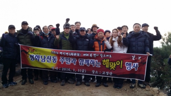 김천시 평화남산동주민센터(동장 신장호)는 병신년(丙申年) 새해 첫날인 1월1일 고성산 산불 전망대에서 평화남산동의 발전과 번영을 기원하는 “ 제2회 고성산 해맞이 행사 ” 를 가졌다.