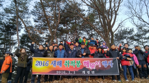 개령면에서는 병신년 새해 첫 태양을 바라보며 새해 희망의 기운을 받기 위해 개령의 진산인 감문산 취적봉에서 새해 해맞이 행사를 가졌다.