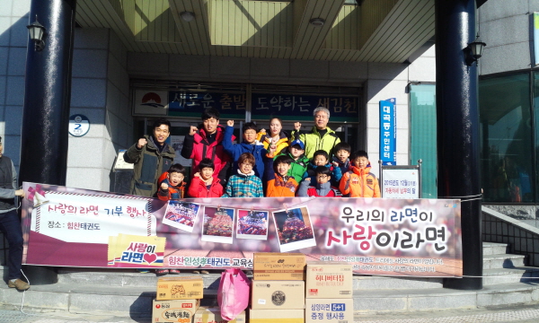 대곡동 소재 힘찬 태권도장(관장 김진삼)은 1월8일 원생들과 함께 어려운 이웃에게 전달해 달라며 동 주민센터를 방문 사랑의 라면을 기부했다.