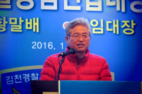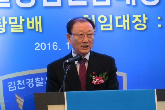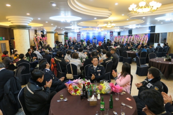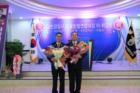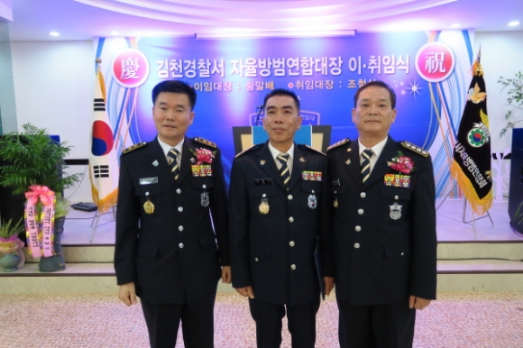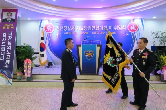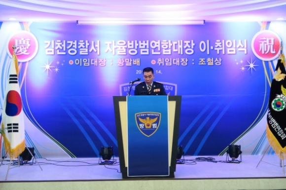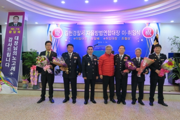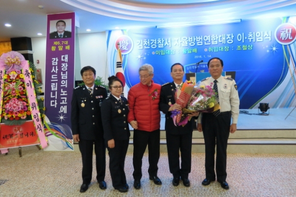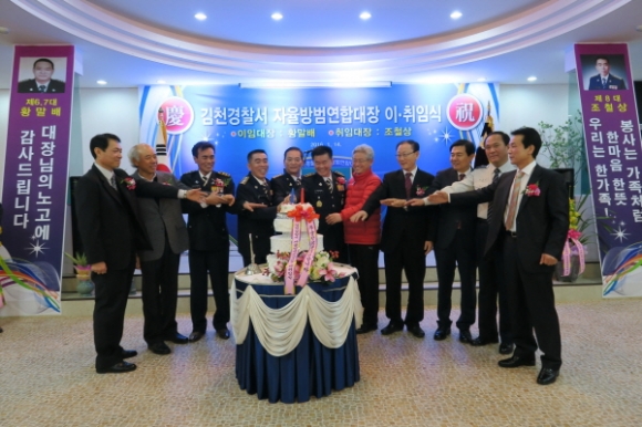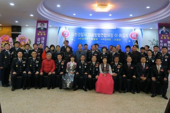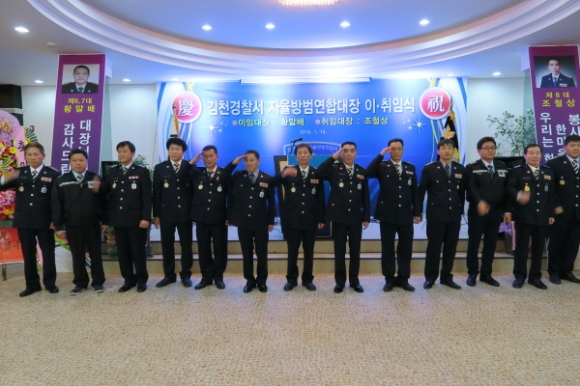 김천시 직지 컨벤션웨딩타운에서는 지난1월14일 300여명이 참석한가운데 김천경찰서 제8대 자율방범연합대장 이,취임식을 가졌다.