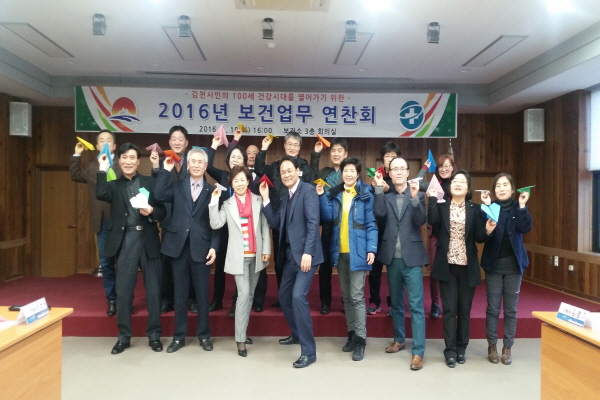 | 김천시보건소(소장 문상연)는 지난 1월 19일 보건소 3층 회의실에서 김천시민의 100세 건강시대를 열고 행복도시 김천을 선도하기 위한‘2016년 보건업무 연찬회’를 가졌다.
