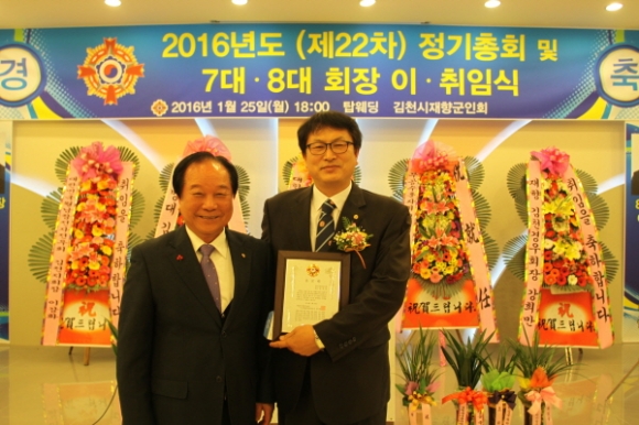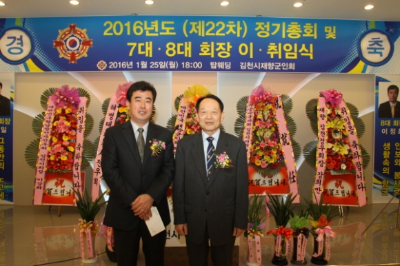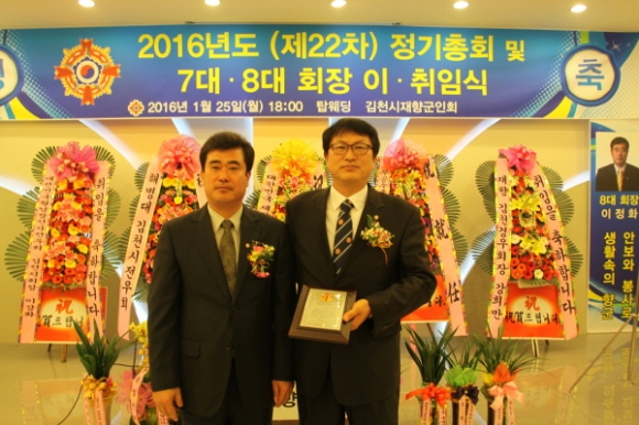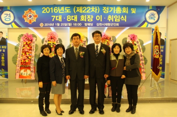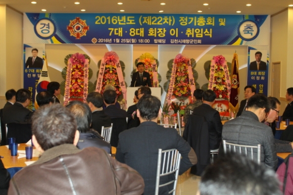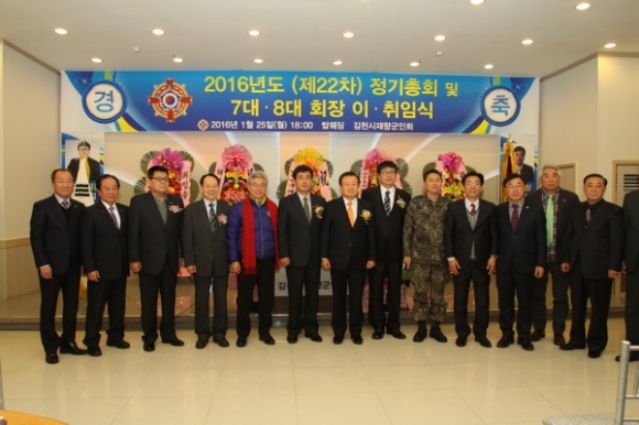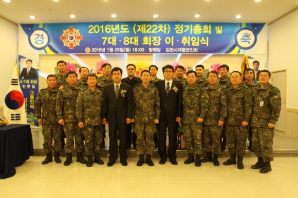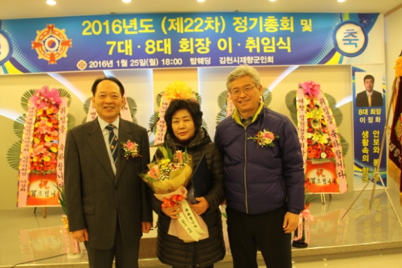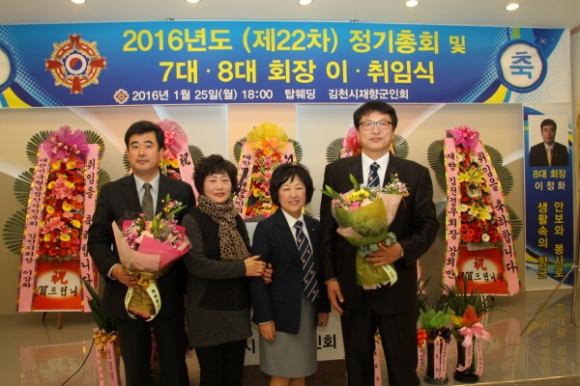 |  | | | ⓒ 김천내일신문 | | 김천시 재향군인회(회장 이정하)는 지난1월25일 회원 및 가족, 지인 200여명이 참석한가운데 탑웨딩에서 제7대 전부일회장 이임식, 제8대 이정화 신임회장 이,취임식을 가졌다.