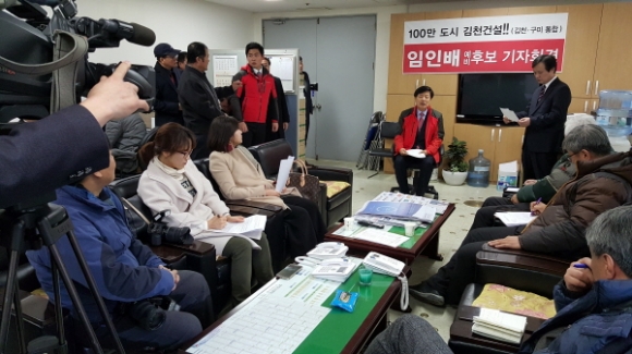 |  | | | ⓒ 김천내일신문 | | 김천, 3선 국회의원을 역임한 임인배 예비후보는 지난1월26일 시청기자실에서 오는 4월13일 실시되는 제20대 총선 출마를 위하여 김천시민들에게 공약사항 관련한 기자회견을 가졌다. [기자 회견문]