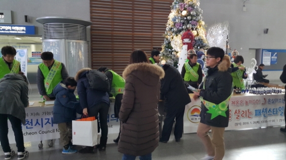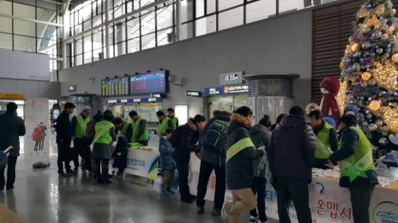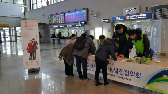 | 김천시(시장 박보생)는 지난 1월 26일 오후 1시부터 5시까지 KTX김천(구미)역에서 동절기 에너지 절약과 온실가스 감축을 위한 ‘온(溫)맵시로 따뜻한 겨울나기’ 캠페인을 전개하여 시민들의 큰 호응을 얻었다.