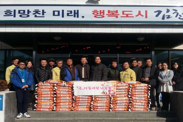 | 김천시 아포읍 아포사랑나눔회(회장 이점배)와 쌀전업농회(회장 윤영수)에서 설명절을 맞아 어려운 이웃에게 전달해 달라며 아포읍사무소를 방문하여 백미10kg 65포(시가 150만원 상당)를 기탁해 나눔의 손길을 이어가고 있다.
