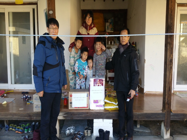 위 가정은 기초생활수급자이면서 4자녀를 키우는 다자녀 가구로 쌀(10kg) 2포, 라면 1박스, 휴지 1세트(싯가 10만원)를 전달하여 따뜻한 설명절을 보내라고 격려하였다.