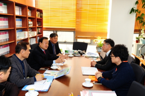 | 박보생 김천시장은 설 연휴 직전인 2월 4일, 바쁜 일정에도 불구하고 ‘김천~거제간 남부내륙철도건설사업’의 조기착수를 위해 현재 예비타당성조사를 수행하고 있는 기관인 한국개발연구원(KDI)을 방문했다.