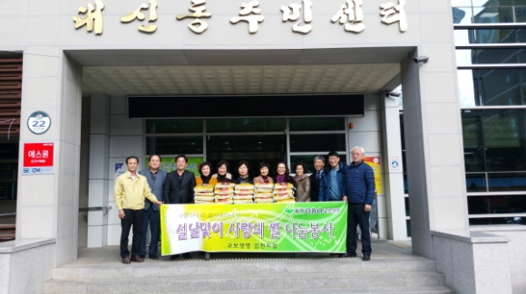 그동안 주위의 어려운 이웃을 위해 많은 활동을 해온 교보생명은 이번에도 쌀 30포를 기탁하였으며, 기탁된 물품은 관내 주민 중 국민기초 생활 보호대상자, 차상위 대상자 등 30명에게 쌀을 전달할 계획이다.