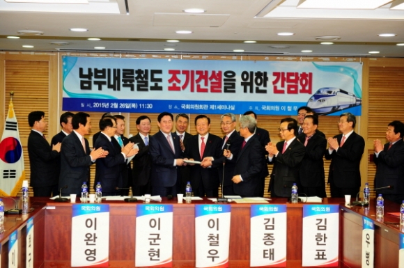 2006년 취임 직후부터 철도건설을 위해 중앙정부와 국회를 10년간 130여 차례에 걸쳐 끈질기게 방문 필요성에 대한 건의를 하였고, 철도관련 기관이나 연구소 국회 등에서 개최되는 토론회나 세미나에는 빠짐없이 참석하여 철도건설의 타당성과 당위성에 대하여 논리적으로 대응해 왔으며,특히, 노선이 통과하는 지역의 시장․군수들과 함께 공동건의를 위한 간담회 개최를 8회나 주선하는 등 지자체간의 공동연대에도 앞장 서왔다.