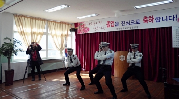 -지례중구성분교 졸업식,경북지방경찰청 경찰관들 축하 공연- -구성파출소 3년간 순찰차로 여학생들의 하교안전을 담당해 준 선행 경찰관들-