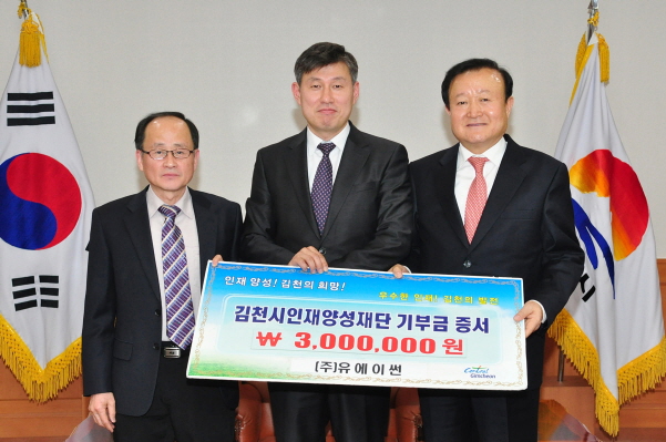 (주)유에이썬, 김천시인재양성재단에 장학금 기탁