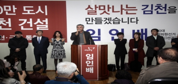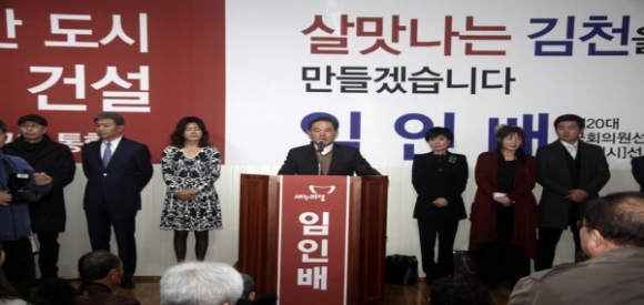임인배 예비후보자는 개소식 인사말을 통하여 다시출마하게 된 것은 우리국회도 우리 김천도 이대로는 절대 안되겠다는 생각에 다시출마를 결심하고 이번 총선은 역대 최악의 국회인 제19대 국회를 심판하는 동시에 지역정치권을 바꾸는 계기가 되어야 한다고 피력했다. |  | | | ⓒ 김천내일신문 | |