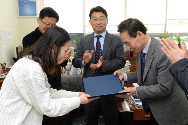 지난2월 23일 한전기술 이재규, 이승종 전임교수는 금오공과대학을 방문하여 전자공학부 박민주 학생에게 장학금 300만원을 수여했다.