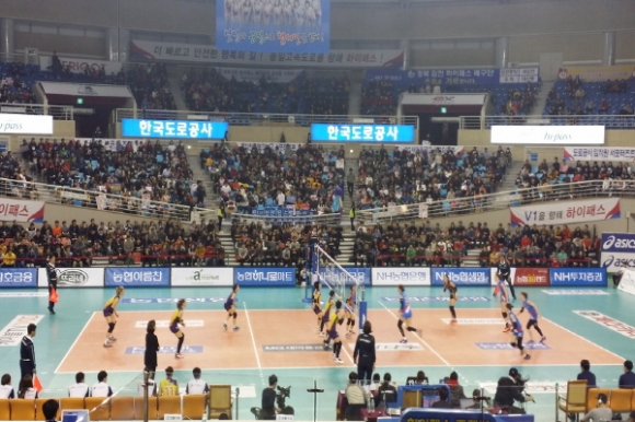 김천시로 연고지 이전 후 첫 시즌을 보내고 있는 한국도로공사의 2015~2016시즌 V리그 여자프로배구대회 홈경기 (한국도로공사 대 IBK기업은행)가 오는 25일 오후 2시에 김천실내체육관에서 열리며, 이는 KBS 1TV로 생중계 될 예정이다.