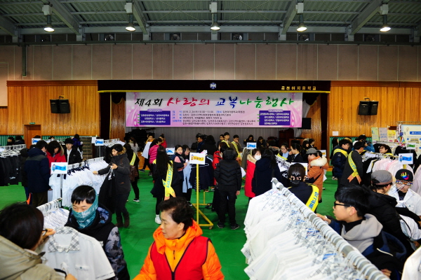 제4회 사랑의 교복 나눔 행사는 김천시와 김천시지역사회보장협의체 통합서비스분과가 공동주최 하였으며, 김천교육지원청, 김천부곡사회복지관 등 7개 기관 공동주관으로 김천시 관내 13개 중·고등학교에서 교복과 체육복을 기증받아서 깨끗하게 세탁을 하여, 1점당 1천원에서 5천원의 저렴한 가격으로 판매하여 학부모들에게 큰 호응을 얻었다.