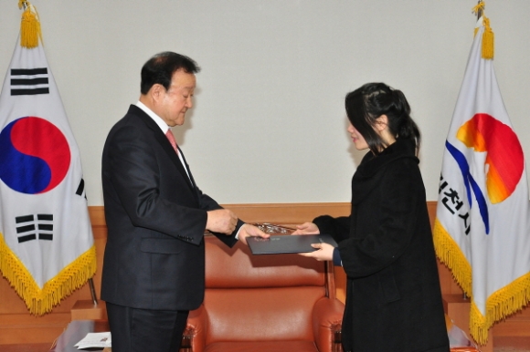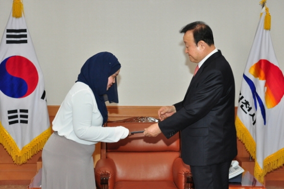 | 김천시(시장 박보생)는 3월 4일 인도네시아의 샨나즈 무티아르 외2명의 외국인에게 행정 연수생 임명장을 수여했다고 밝혔다.