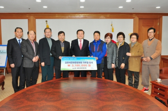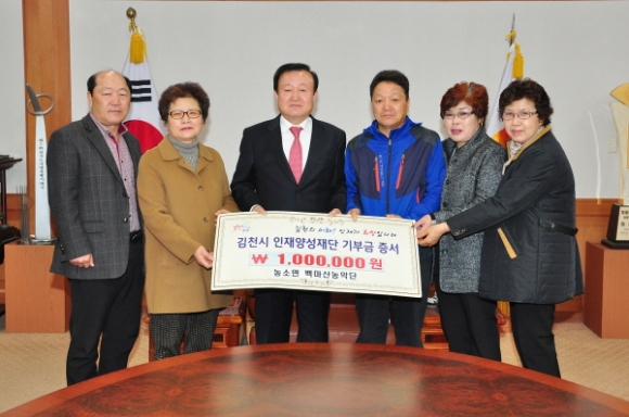 | 김천의 교육발전과 글로벌 인재육성을 위해 농소면 관변단체장협의회 및 백마산 농악단(단장 배재희)에서 김천시인재양성재단(이사장 박보생)에 장학기금 410만원을 기탁했다.