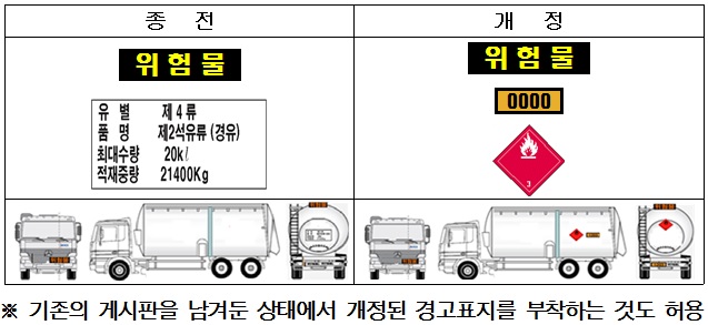탱크로리 등 위험물 운송차량 경고표지 바뀐다