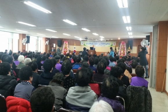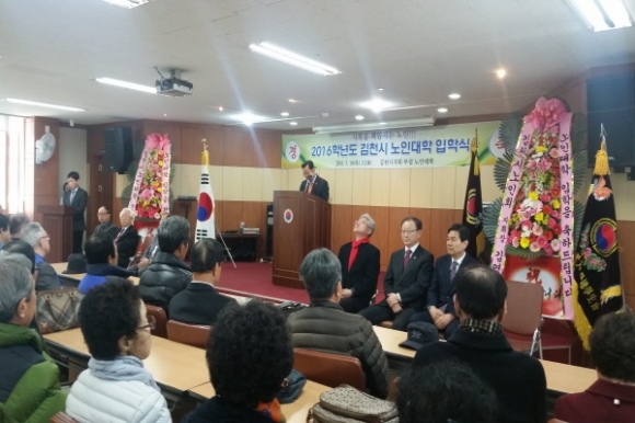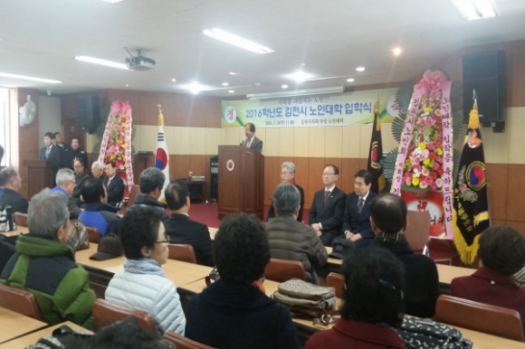 | 김천시(시장 박보생)에서 대한노인회 김천시지회의 부설로 운영하고 있는 노인대학이 3월10일 2016학년도 입학식을 가졌다.
