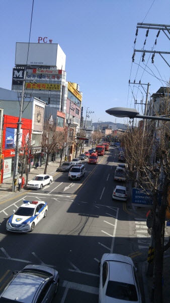 김천소방서 모세의 기적 위해 소방차 길을 양보