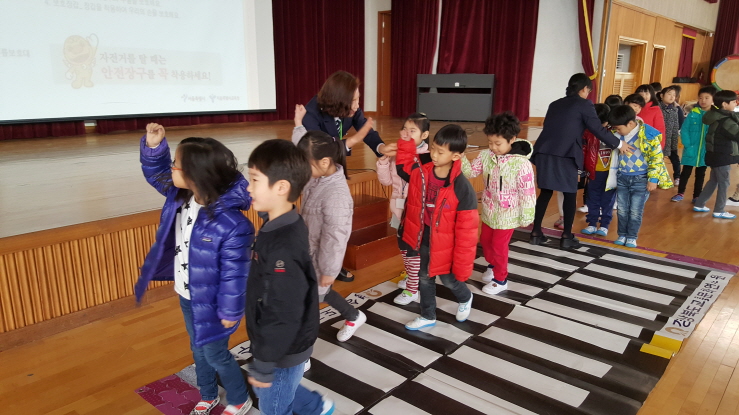 최근 안전교육에 대한 사회적 관심이 높아지고 그에 따라 학교 현장에서도 사회적 요구에 맞추어 다양한 교육을 실시하고 있는 가운데, 경상북도 교통문화연수원의 강사 두 분을 초빙하여 ‘멈춘다’, ‘살핀다’, ‘손 든다’, ‘눈 맞춘다‘ ’건넌다‘ 의 5원칙에 따라 안전하게 등하교를 할 수 있도록 교통안전 이론과 동영상 시청 등 재미있고 살아있는 눈높이 수업을 진행하였다.