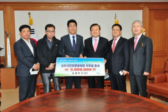 안동시에 위치한 삼광토건(주) 이동찬 대표는 “김천시 하수관거 정비사업을 하면서 김천시민들로부터 많은 도움을 받았으며 그 고마움에 보답하고자 김천시인재양성재단에 5백만원을 기탁하게 됐다.”고 말했다.