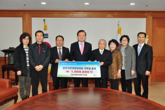| 김천의 교육발전을 위해 신음동 이원베르빌APT(입주자 대표회장 김광열) 주민일동이 마음을 모아 김천시인재양성재단(이사장 박보생)에 장학기금 1백만원을 기탁했다.