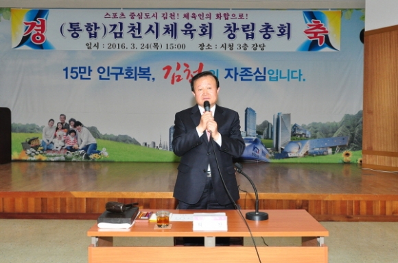 이번 체육단체 통합은 지난해 3월 국민체육진흥법이 개정됨에 따라 양 단체(김천시체육회, 김천시생활체육회)를 통합해 전문체육과 생활체육의 연계성을 강화하고, 선진국형 체육시스템 도입을 위해 마련했다.