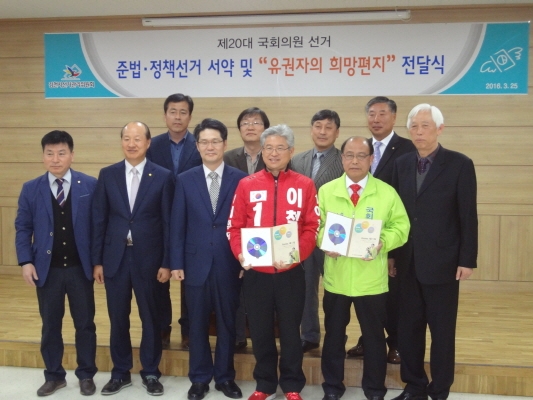제20대 국회의원선거가 유권자의 ‘희망’에 대한 후보자의 ‘약속’이 지켜지는 참다운 ‘실천의 장’이 될 수 있도록 하자는 취지에서 마련된 이번 행사는 후보자들이 유권자의 바람이 담긴『영상편지』를 함께 시청하고 DVD와 책자로 구성된『유권자의 희망편지』를 전달 받은 후 준법․정책선거 결의문에 서약하는 순서로 진행되었다.