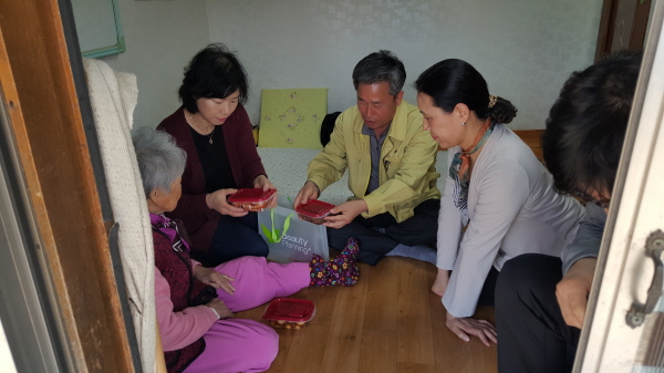 이날 봉사활동은 형편이 어렵고 거동이 불편한 독거노인 3가구를 선정하여 교회에서 직접 만든 반찬전달, 어르신들의 집안청소, 혼자 생활하느라 무료했을 어르신들에게 안부를 묻는 것으로 이루어졌다.