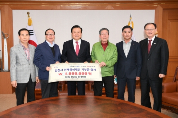 | 김천의 교육발전과 글로벌 인재육성을 위해 자산동 중앙시장 상가번영회(회장 최재민)에서 김천시인재양성재단(이사장 박보생)에 1백만원을 기탁했다.