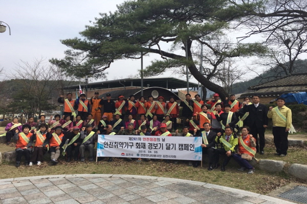 | 김천시(시장 박보생)는 지난 4월 6일 증산면 평촌리에서 김천소방서, 안전모니터봉사단원들과 함께 농촌지역의 생활안전을 담보하기 위하여 80가구에 화재경보기 달아주기 행사를 진행했다.