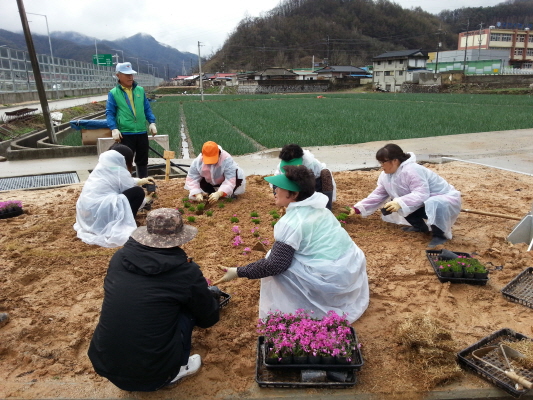 지난6일 이틀간 남녀 새마을지도자협의회장을 위시한 지례면 새마을지도자 회원들은 농사철 각자의 일이 바쁨에도 불구하고 아름다운 지례면을 만들기 위해 궂은 날씨에도 아침부터 지례면 상부리와 교리 등에서 패랭이, 꽃잔디를 비롯한 여러종류의 꽃묘를 심었다.