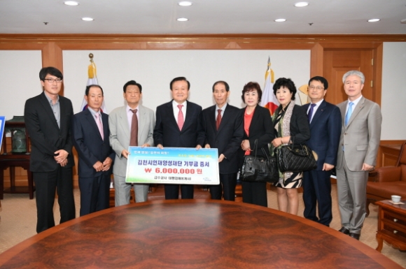 급수공사 대행업체 대표 일동은 “ 김천에서 급수공사 사업을 하면서 김천 시민들로부터 많은 도움을 받고 있으며, 그 고마움에 보답하고자 김천시인재양성재단에 6백만원을 기탁하게 됐다.”고 말했다.