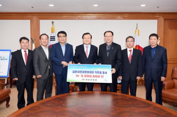 (주)새김천청과(대표 김경철)에서 4월 15일 김천시청을 방문하여 김천시인재양성재단에 장학금 5백만원을 기탁했다.