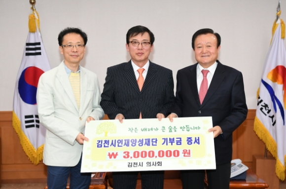 | 김천의 교육발전과 글로벌 인재육성을 위해 김천시 의사회(회장 강승모)에서 김천시인재양성재단(이사장 박보생)에 장학기금 3백만원을 기탁했다.