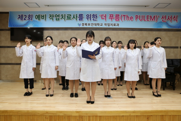 | 경북보건대학교(총장 이은직) 작업치료과가 4월 21일 예비 작업치료사를 위한 ‘제2회 더 푸름(The PULEM) 선서식’을 교내 목인관 시청각실에서 개최했다.