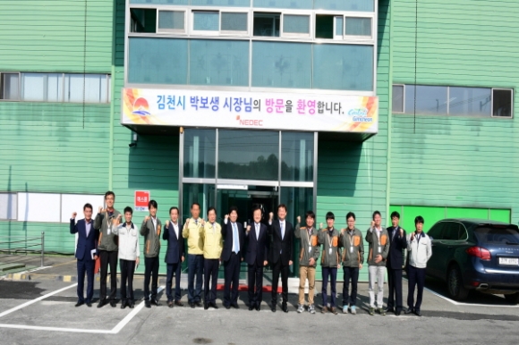 |  | | | ⓒ 김천내일신문 | | 김천시 박보생 시장은 4월 25일 농소면에 위치한 네덱(주)김천공장을 방문했다. 네덱(주)은 전자 및 자동차부품 등을 생산하는 기업으로 경기 수원에 본사가 있으며, 미국, 중국, 필리핀, 베트남, 멕시코에도 현지법인을 설립․운영하고 있는 회사로 연간매출 1,324억원, 2016년 고용부 선정 ‘100대 고용창출 우수기업’으로도 선정된 우수기업이다.