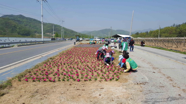 4월 26일(화) 새마을남,여지도자 50명이 참석한 가운데 군도19호선의 주통로인 삼성리 416-2번지 약410㎡ 규모의 꽃밭에 봄꽃인 페츄니아 7,000본을 빨강, 분홍, 보라, 흰색의 4색 조화를 이루도록 식재하였다. 또한 삼성리 411-2번지(약 170㎡)에는 도로변보다 현저히 낮은 곳에 위치하여 칸나 1,000본을 식재하여 키가 큰 꽃을 기대하게 되었다.