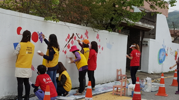 | 김천시는 지난 4월 28일(목) 김천시 백옥길 (노증리) 골목길 벽에 희망나눔 프로젝트 일환으로 「벽화그리기」를 실시하였다.