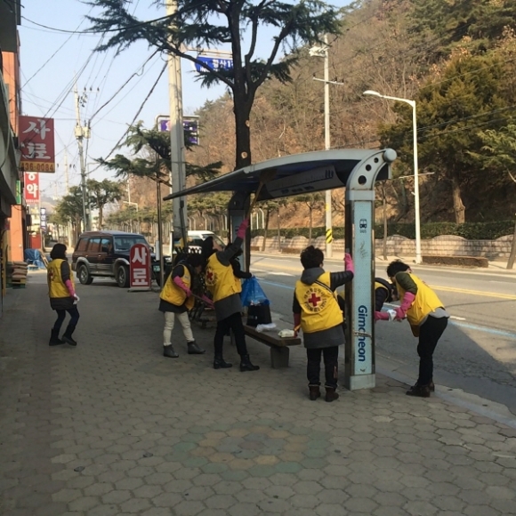 지좌동적십자봉사회 버스승강장 대청소로 김천사랑 실천