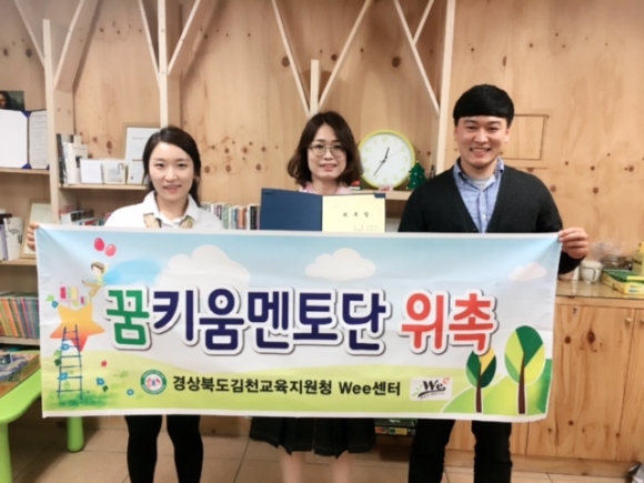 | 경상북도김천교육지원청(교육장 장태덕)은 학업중단 위기에 있는청소년에게 정서, 학습, 진로 등 다방면에서 지원하고자 전문직업인 및 청소년 분야 전문가로 구성된 꿈키움멘토단을 위촉하였다. 꿈키움멘토단은 자아를 찾아가고 세상을 배워가는 청소년들이 긍정적인 자세로 건강한 청소년기를 보낼 수 있도록 심적 안정과 정신적 성장을 도와주는 맞춤형 일대일 멘토링 네트워크 체계이다.