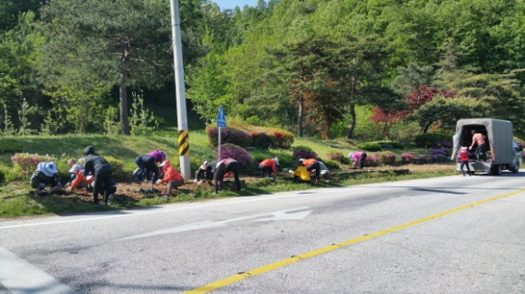 대덕면 생활개선회 연도변 환경조성을 위해 꽃밭 조성
