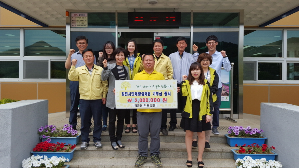 | 김천의 교육발전과 글로벌 인재육성을 위해 감문면 직원일동(면장 김대균) 이 김천시인재양성재단(이사장 박보생)에 장학기금 2백만원을 기탁했다.