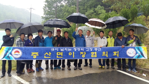 | 증산면 이장협의회는 지난 5월 10일 증산면민들의 숙원사업인 가목재 터널의 조기착공을 위한 현장답사를 실시했다. 가목재 터널 조성 사업은 증산면 주민들의 정주여건을 방해하고 지역 균형발전을 저해하는 가목재에 터널을 조성하여 지역 간 불균형을 해소하기 위한 주민들의 숙원사업으로, 그동안 예산 등의 이유로 사업이 미뤄져왔으나, 증산면 주민들은 면 곳곳에 현수막을 내걸고 관련 관청을 항의방문 하는 등 가목재 터널 조기착공을 위한 노력을 지속적으로 벌여오고 있다. 이에 발맞춰 김용태 회장을 비롯한 증산면 이장협의회에서는 증산면 주민들을 대표하여 가목재 터널 예정지를 현장답사하고, 가목재 터널 조기착공을 위한 방안을 모색했다. 현장답사에 함께한 김창국 가목재터널추진위원장은 이 자리에서 “증산면 발전을 위해 가목재 터널보다 중요한 것은 없다.” 라고 말하며 증산면 가목재 터널에 대한 필요성을 역설했다. 가목재 터널이 지어지게 되면 지례면까지 이어진 국도 30호선과 연계되어 김천시까지의 이동시간이 상당시간 단축될 것으로 보여 그동안 오지면으로 불편이 이만저만이 아니었던 증산면 주민들의 불편이 해소될 것으로 보인다. |